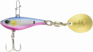 左右に揺れながら落下するため、水の表面付近から底のほうまで効率的に魚を誘うことができます。また前側についているフックを後側に装着してリールを巻くと左右に揺れるため、後ろからアタックしてくる魚にも効果的。虹色に光るボディも、魚の食い気を駆り立てます。