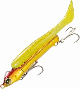 後ろに重心があり頭を支点にお尻を振って泳ぐので、早巻きすると本物の魚が逃げているように見えます。30gの商品の飛距離は、100mです。