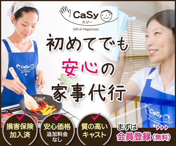 Casy(カジー)は家事代行や料理代行などのサービスを行っており、業界的にも比較的安い料金で利用でき、かつ質の高いサービスを提供していることから評判は良いです。