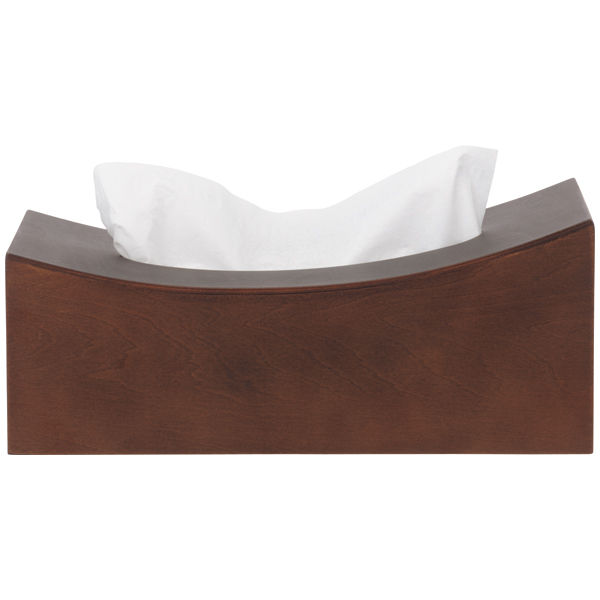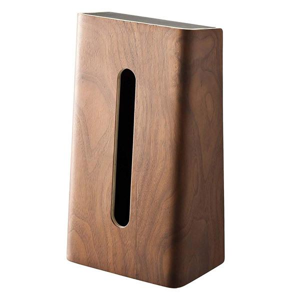 上品な木目と曲線のデザインが美しく、インテリアに溶けこむティッシュケース。縦型に置けるので取り出しやすいのも特徴です。