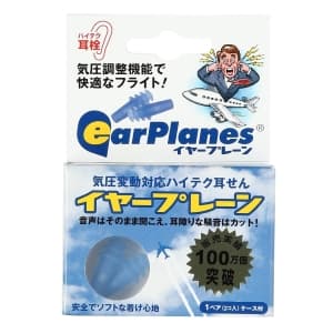 • 気圧変化を緩和する機能が付いた耳栓。1ペア入りの使い切りタイプで、往復の飛行機で使用できます。持ち運びに便利な、ケースも付いています。