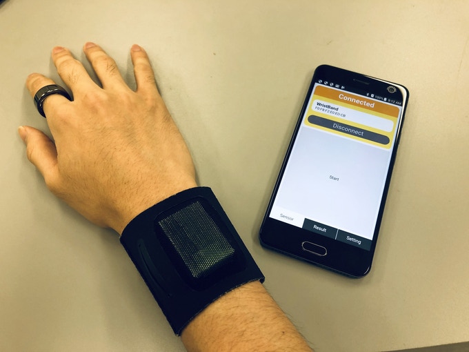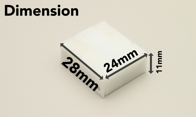 「WonderSense」は、縦28mm、横24mm、高さ11mmで重さも10gしかない超小型の製品だ。バッテリーも内蔵しているので、腕や足などどこにでも気軽に取り付けて計測することができる。