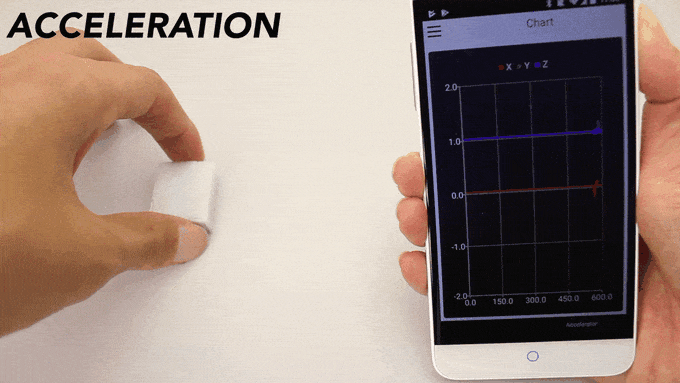 「WonderSense」には加速度センサーとジャイロデータが搭載されているので、移動した方向と量を推定できる。推定したデータを利用して軌跡を描画したり、事前に教師データを取得しておけば、アルゴリズムを用いてリアルタイム行動も認識することも可能だ。ゲームキャラクターを手のジェスチャーで直感的に操作するといったこともできる。