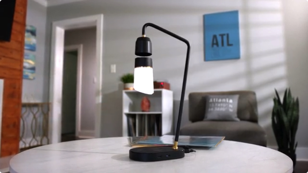 「Megi」は、まるで魔法のように浮いているルームライト。部屋の雰囲気を変えるのはもちろん、機能も充実している。ボイスコントロールに対応し、ライトのオンオフや明るさの調整を声で行える。また充電ポートも搭載しており、有線でも無線でも高速充電できる。