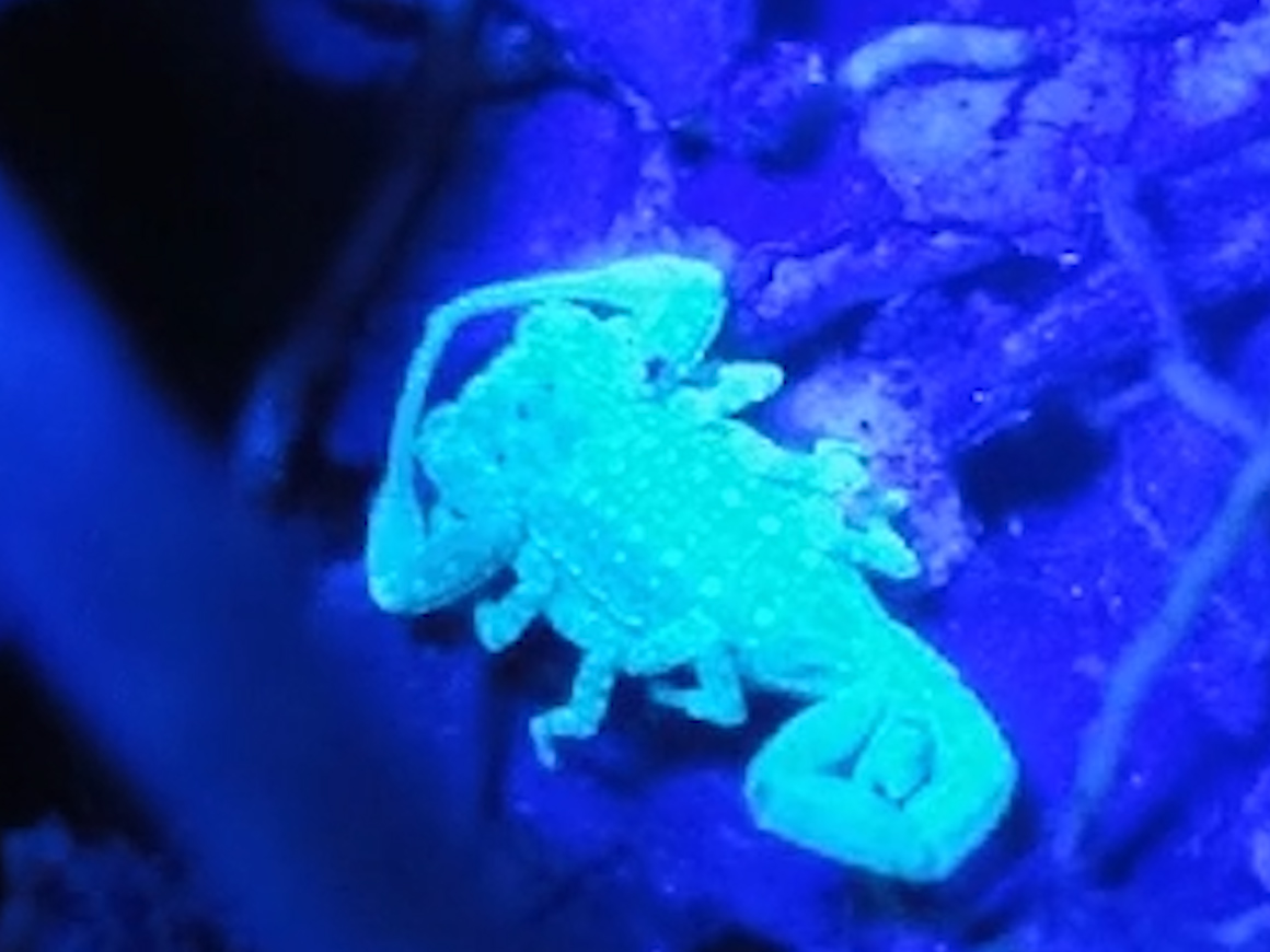 「UV」の紫外線ライトをサソリに当てれば、サソリがどこに生息しているかが分かる。サソリに紫外線ライトを当てると、外骨格が緑色に光るそう。夜道にサソリが生息しそうな場所で、ライトを使えばうっかり踏んでしまう前に発見できるかもしれない。