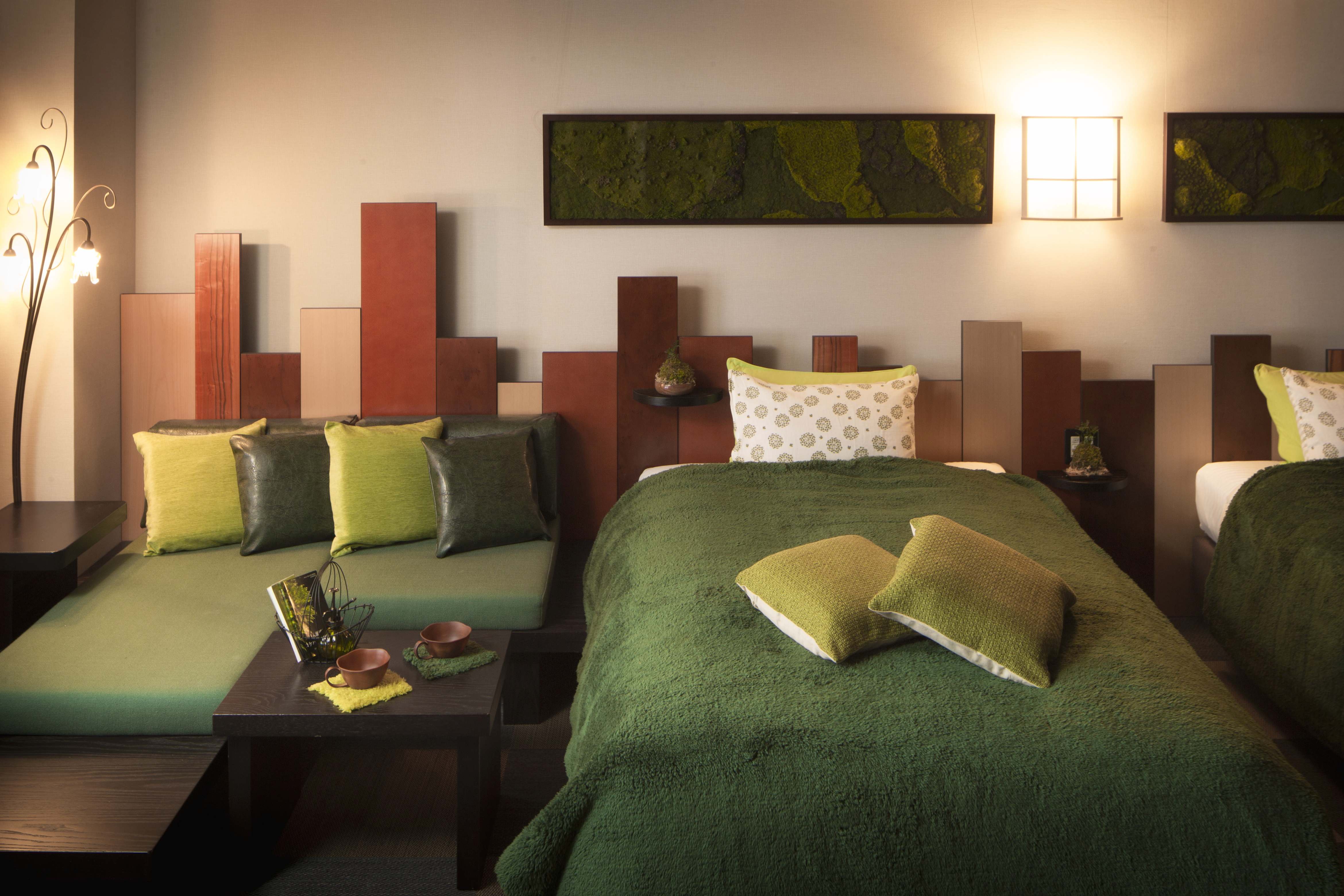 散歩のあとは、苔イメージのインテリアであふれた苔ルームでゆっくりと寛ぐことができます。