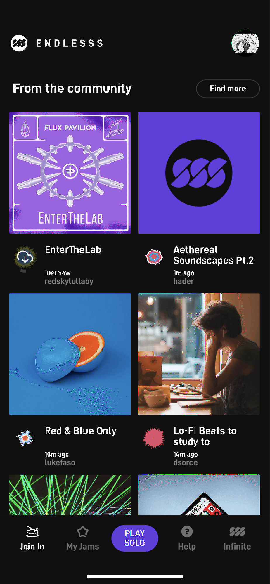 ENDLESSSのアプリ内で公開されている世界中の人が作ったJamに参加することもできます。SNSのようになっていて、気軽にいいね!とかみんなコメントを残していっているようでした。