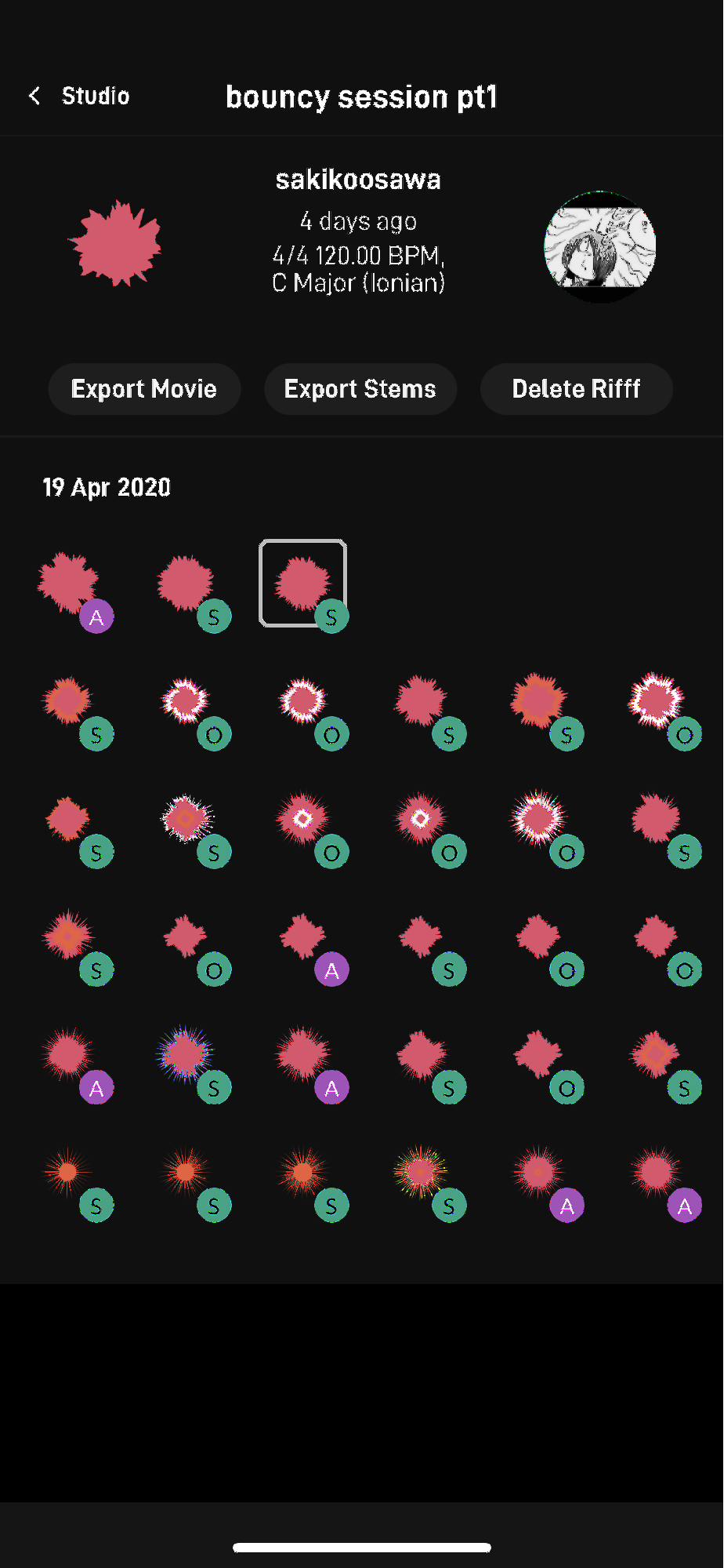 セッションし終わったものはムービーでかきだせたり、それぞれの音源をバラバラで音ファイルにしてSTEMをAirdropでPCに転送したり、dropboxなどに保存したりできます。