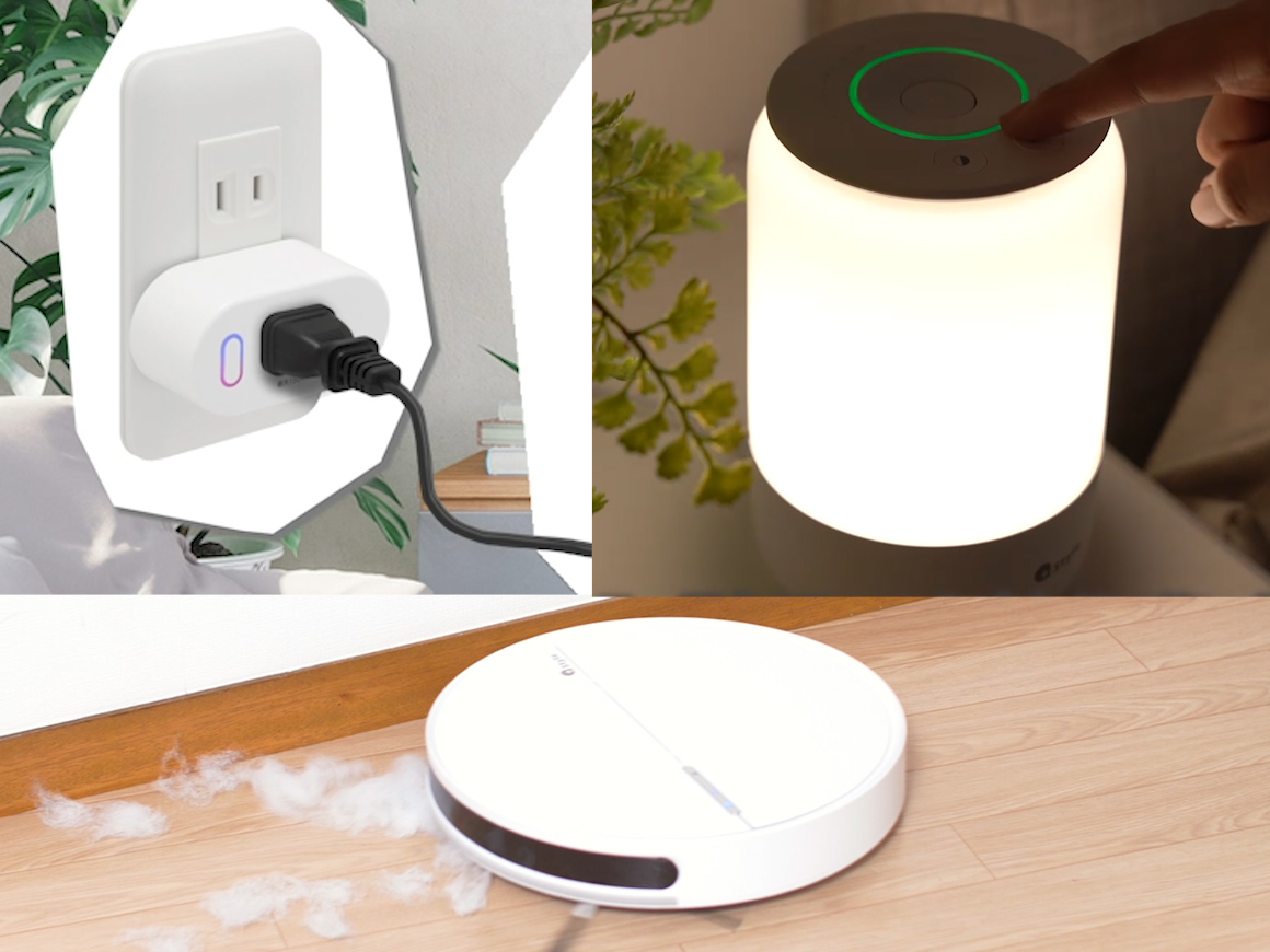 「スマートWi-Fiプラグ」以外にも、水拭きもできるロボット掃除機、自宅訪問者を外出先からも確認できるビデオドアホン、好きな光量・色に調整できるベッドサイドランプなど、見どころ満載だ。