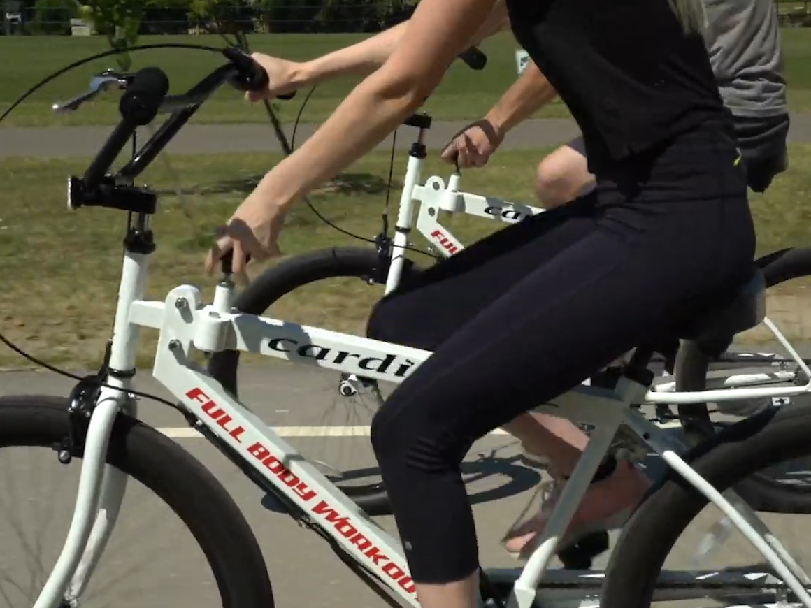 そんな着想からうまれたのが、自転車を足でこぎながら、上半身もエクササイズできる自転車「Cardigo Bikes」だ。