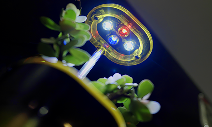 植物の成長に最適な波長の光を、自動で照射してくれる。