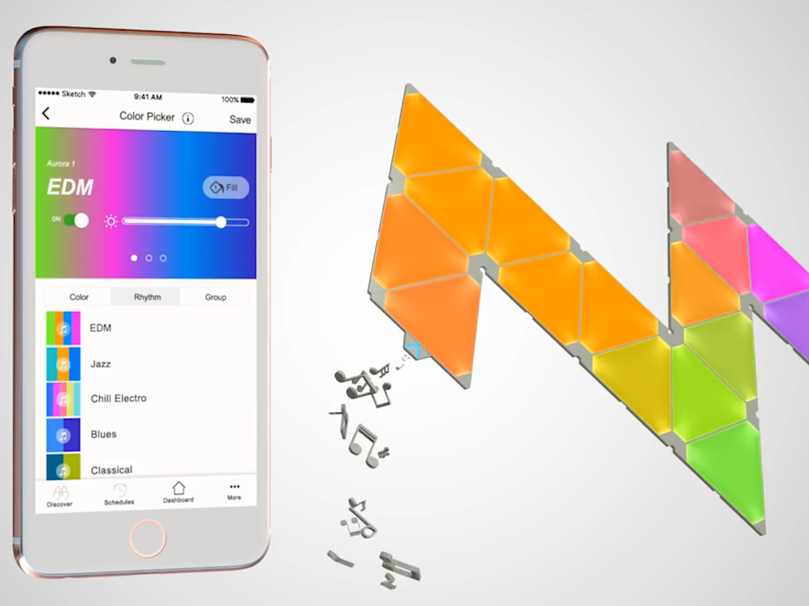 壁に貼り付けるだけで簡単に設置することができる照明「Nanoleaf」。