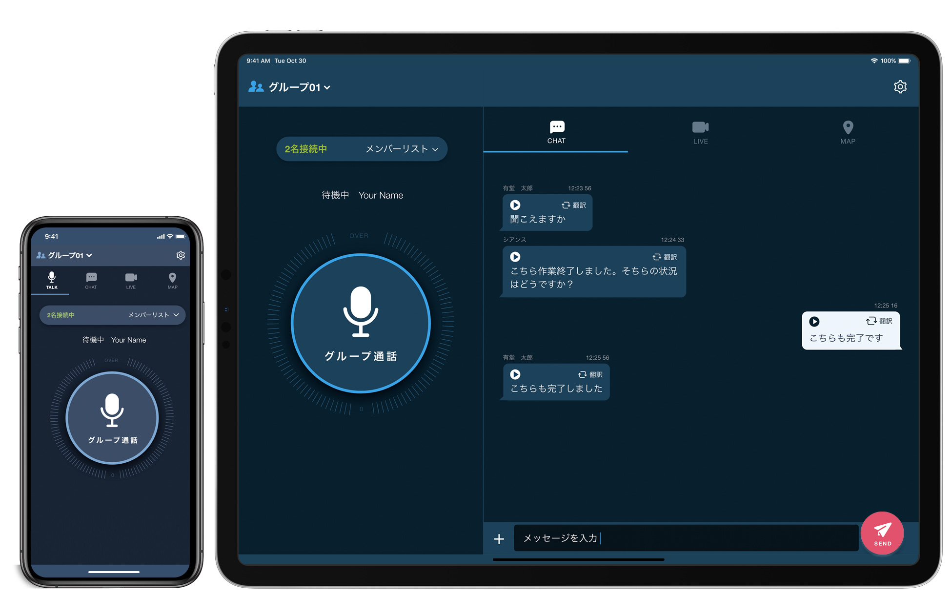 ・ インカムのように話せる「グループ通話」で濃厚接触を回避