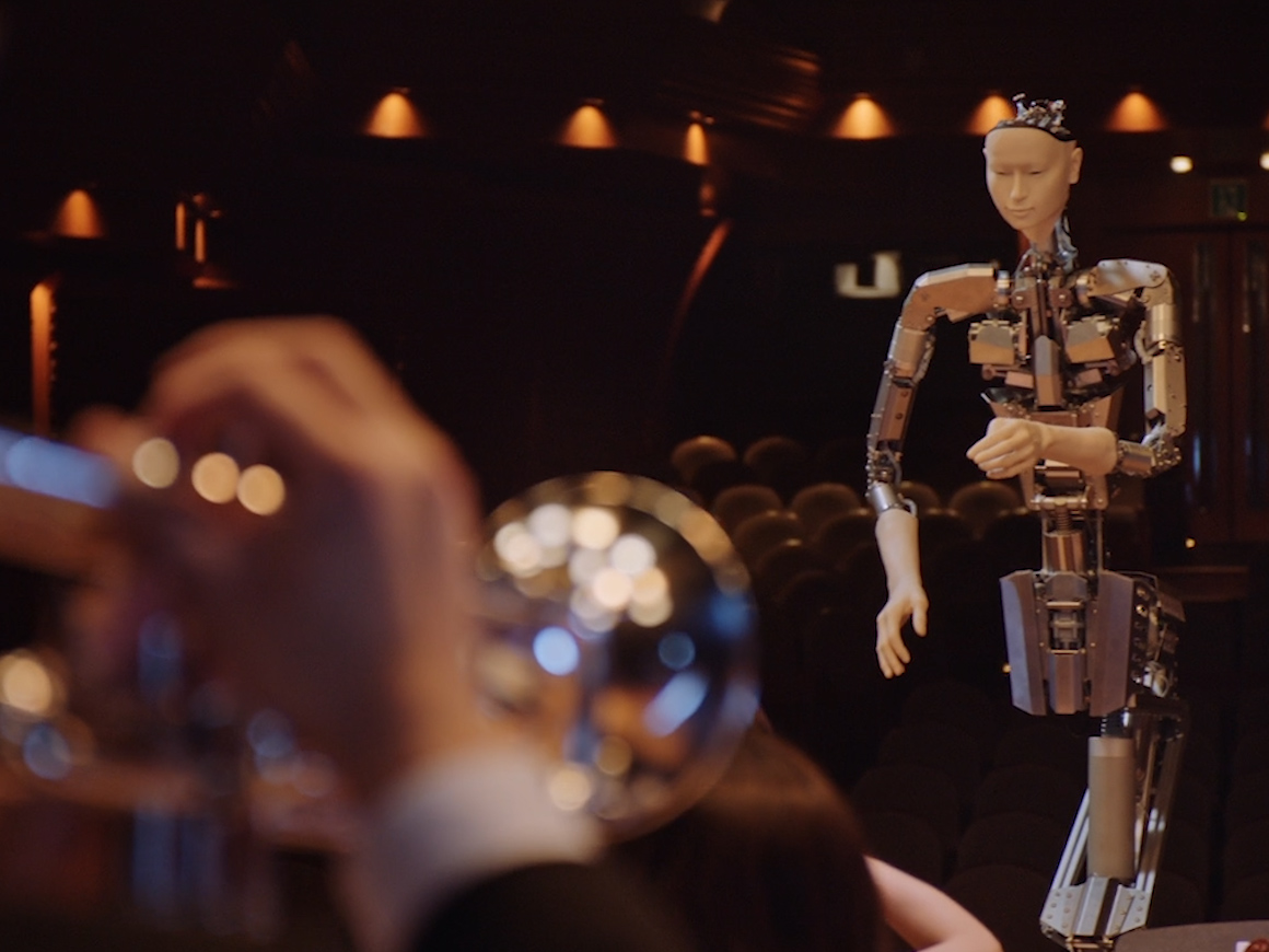 人工知能を搭載したアンドロイド「オルタ3」が人間の演奏者を指揮する動画が、NTTドコモのYouTubeチャンネルにて公開されている。