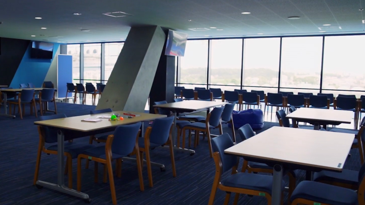 子供たちは彼らのために川崎市が用意した「センサリールーム」で観戦します。