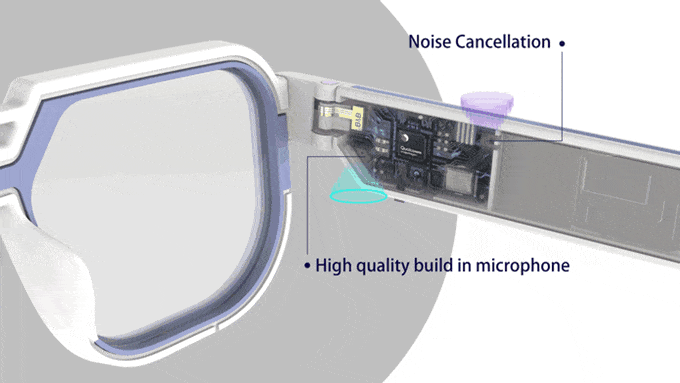 「Mutrics GB-30」はつるの部分にスピーカーを搭載したオーディオグラス。Bluetooth接続したスマホなどのサウンドをワイヤレスで楽しめる。