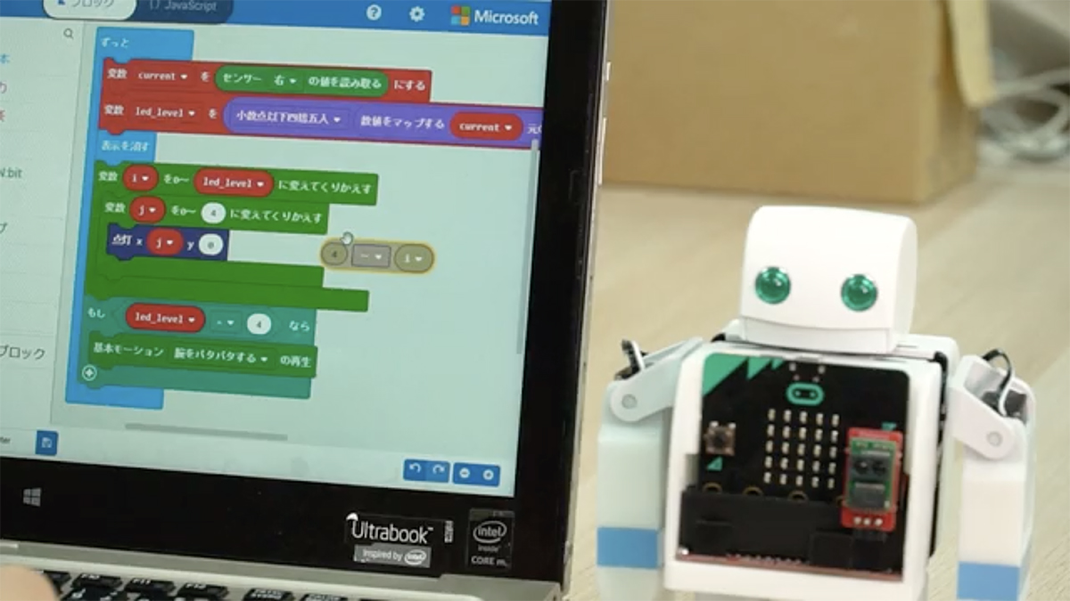大阪に拠点を置くプレンプロジェクト社が開発した、プログラミング学習用の可愛いロボット「PLEN:bit」。英国BBCが開発した教育⽤⼩型コンピューター「micro:bit」を搭載し、誰でも楽しくプログラミングを学べるロボットだ。