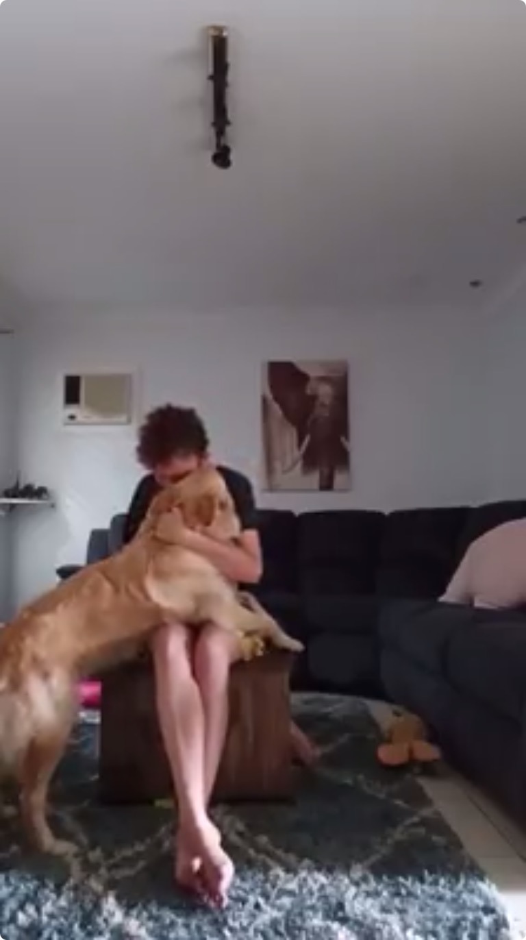 高機能自閉症のヘイリーさんは、パニックに襲われたとき、自分をたたいたり、ひっかいたりしてしまいます。自閉症介助犬のマーリーは、ヘイリーさんの自傷行為を見つけると、ハグするよう訓練されています。