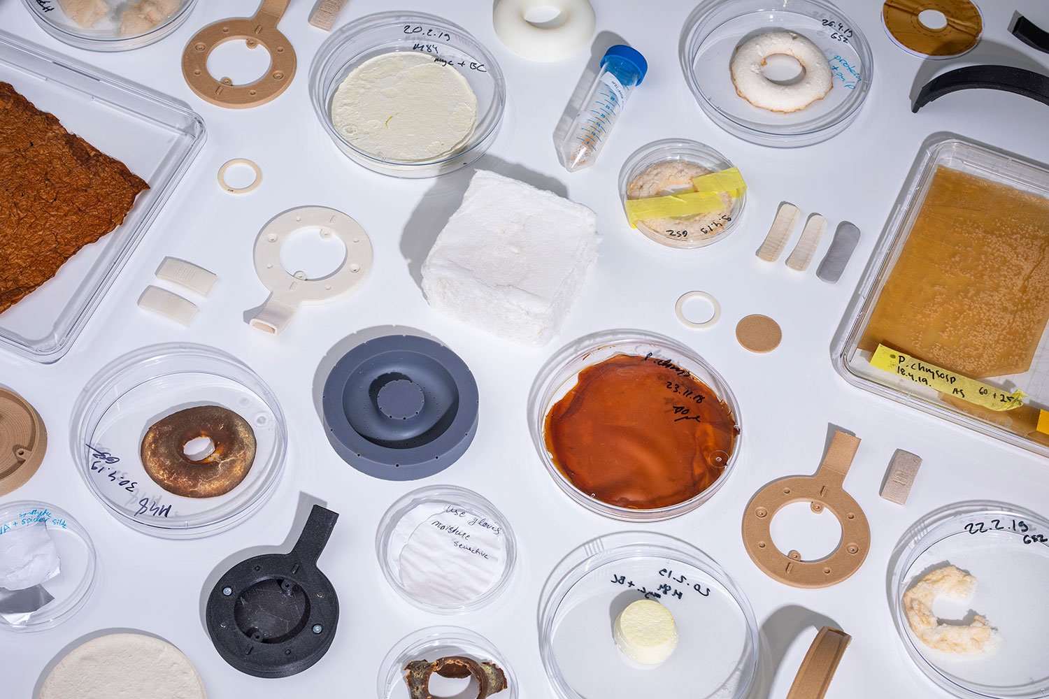 科学者やデザイナー、アーティストが集められ、微生物材料を用いた製品化における機能性とデザインの共同研究のために開発した。