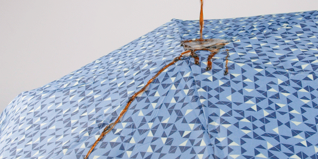 さらに一般的な折りたたみ傘の場合は、生地を巻く際に手の脂が生地の撥水性を落としてしまいます。「urawaza」の場合、形態安定技術のおかげでほとんど一瞬で傘を巻けるから、撥水性が落ちにくんです。