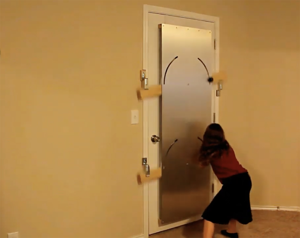 アメリカのBATTENSHIELD社が開発した、侵入者を防ぐ家庭用ドアバリケードシステム。とっさに自宅に避難した際に、素早く侵入者を防いでくれる頼もしいアイデアだ。