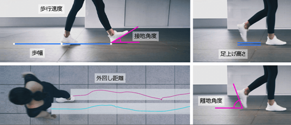 これらのデータは専用アプリから確認できます。歩行姿勢のタイプを6種類に分類してくれるため、ただ歩いているだけで「自分はがに股なんだ……」というようなことがわかります。