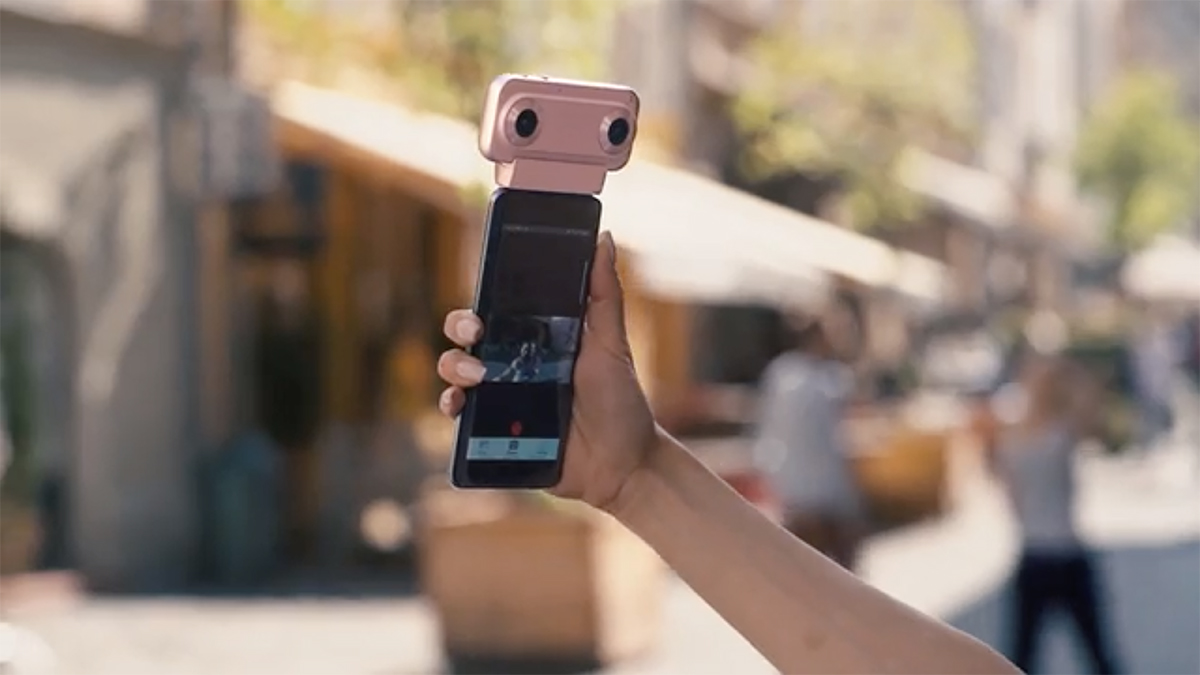 USB Type-C or ライトニングポート経由でスマホやPCに装着でき、VR動画のライブストリーミング撮影まで楽しめる。