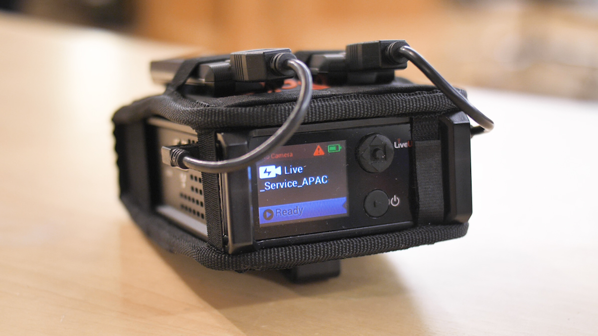 使っている機材はLiveU Soloとハンディカム、それをHDMIケーブルで繋いでいる。