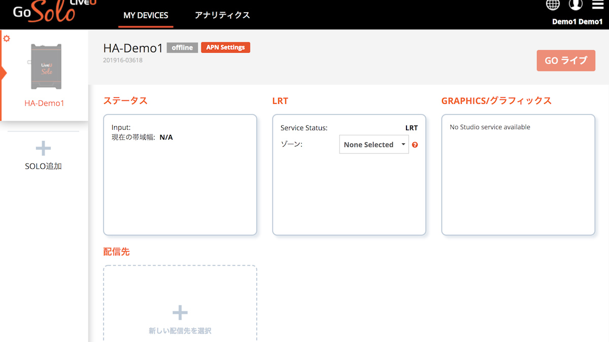 LiveU Soloに接続されたカメラの映像・音声は、「LiveU Solo専用ポータルサイト」で一括管理。ここから主要SNSサイトはもちろん、数多くのプラットフォームに配信が可能だ。