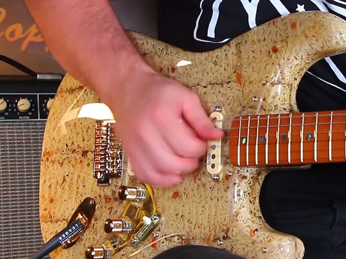 ロシアのYouTubeチャンネル「ArtMayer」が製作したのは、インスタントラーメン36袋で製作したエレキギター。