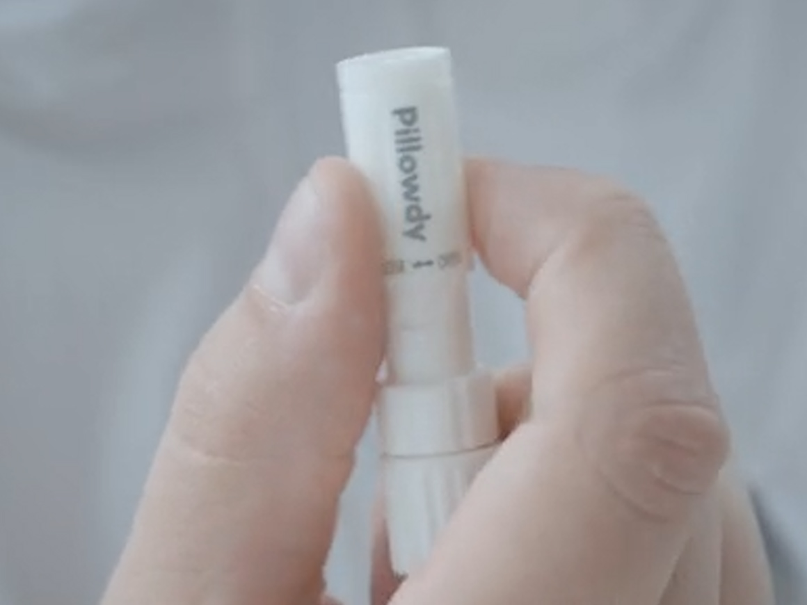 「Pillowdy」のフードに仕込まれたネックピローは膨らませる必要がある。エアクッションの枕で、胸ポケットにあるチューブから口で空気を送れる。