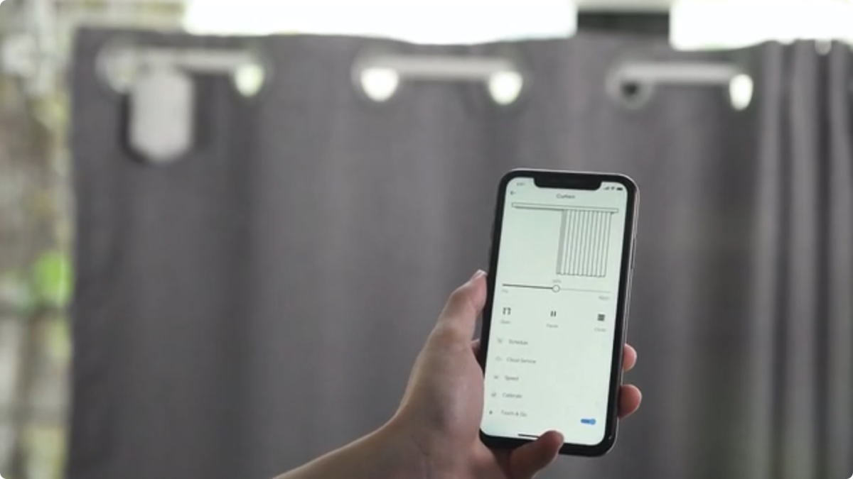「SwitchBot Curtain」は重さ約200gで、最大約6kgまで横にモノを動かせる。重たく作られた、遮光カーテンや防音カーテンでもしっかり開閉できる。専用アプリと連動しており、スマホからの開け閉めも簡単。さらには、屋外からでも開け閉めできる。