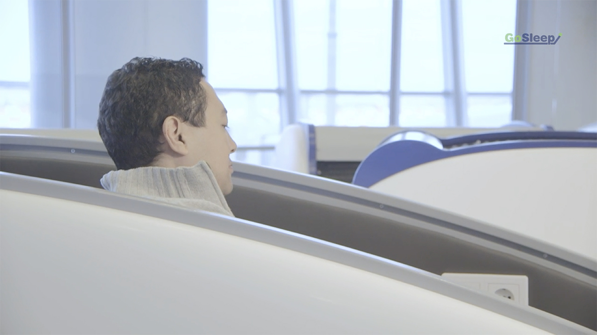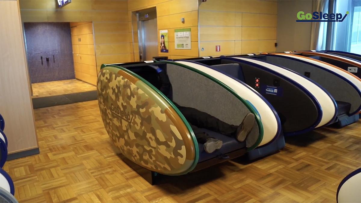 シングルベッドサイズのカプセル式を採用した「Go Sleep」。中に入って蓋を閉めれば完全なプライベート空間になるため、心ゆくまでぐっすりと眠ることができる。