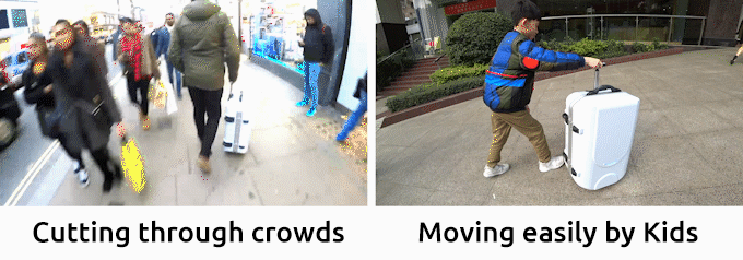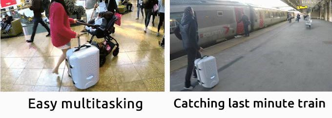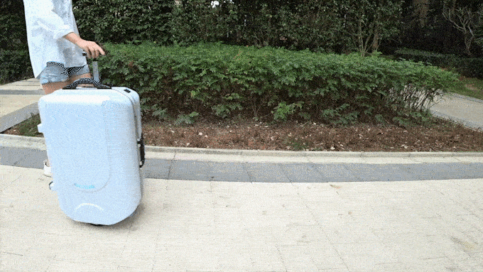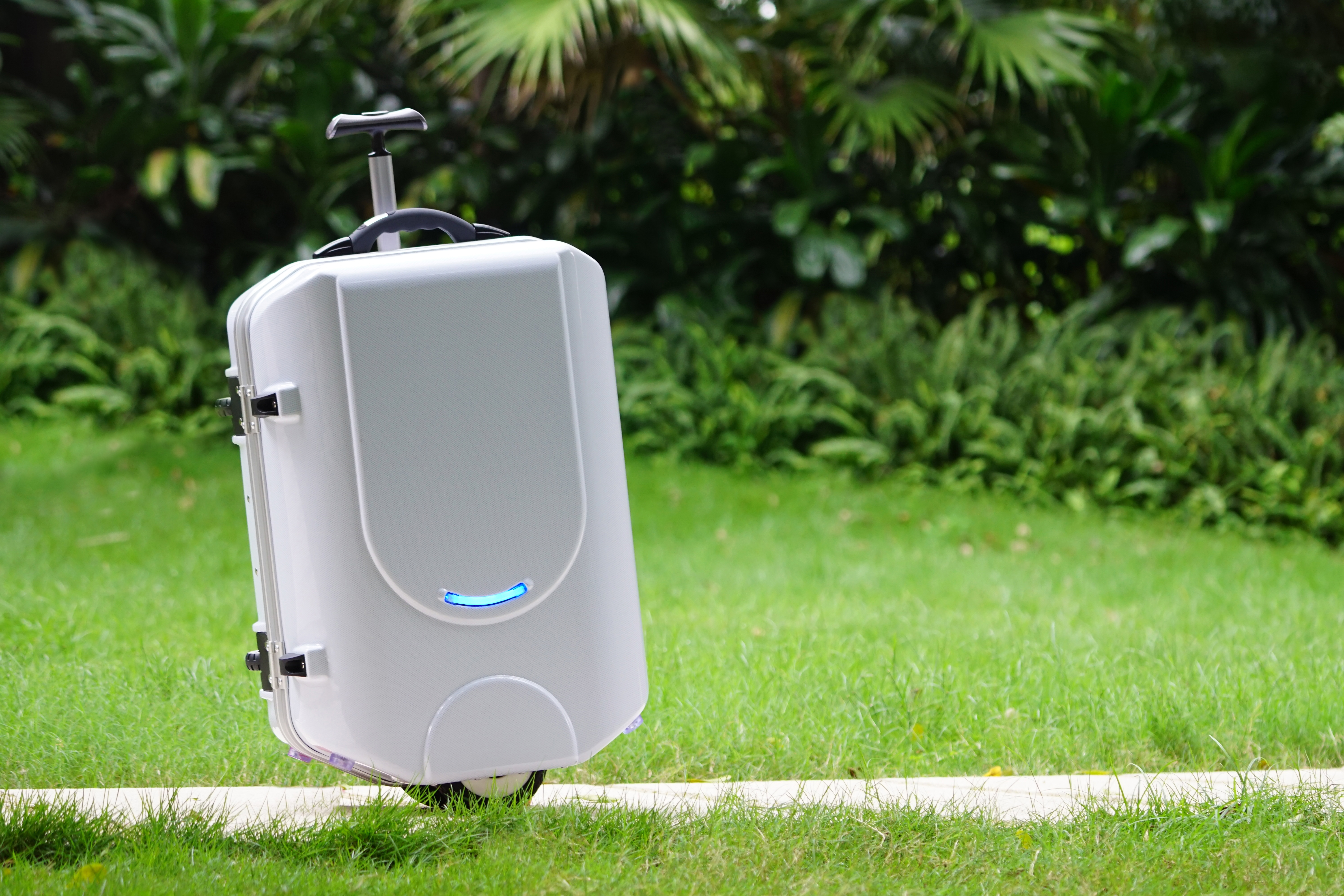 電動のモーターを搭載し、歩く速度に合わせてスーツケースが一緒に動いてくれる。