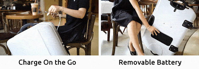 バッテリーは汎用性の高いUSBポートで充電でき、取り外してスマホを充電することもできるので旅行中に起きるスマホの電池切れも怖くない。