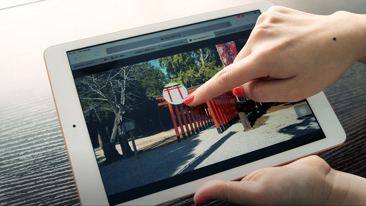 URLならなんでも貼れるため、観光動画なら紹介されている場所のルート案内を付けたり、伝統料理の説明ページを付けたり。鳥居をタップすると参拝の作法までわかるなど、既存の動画をアップデートするツールとなっています。