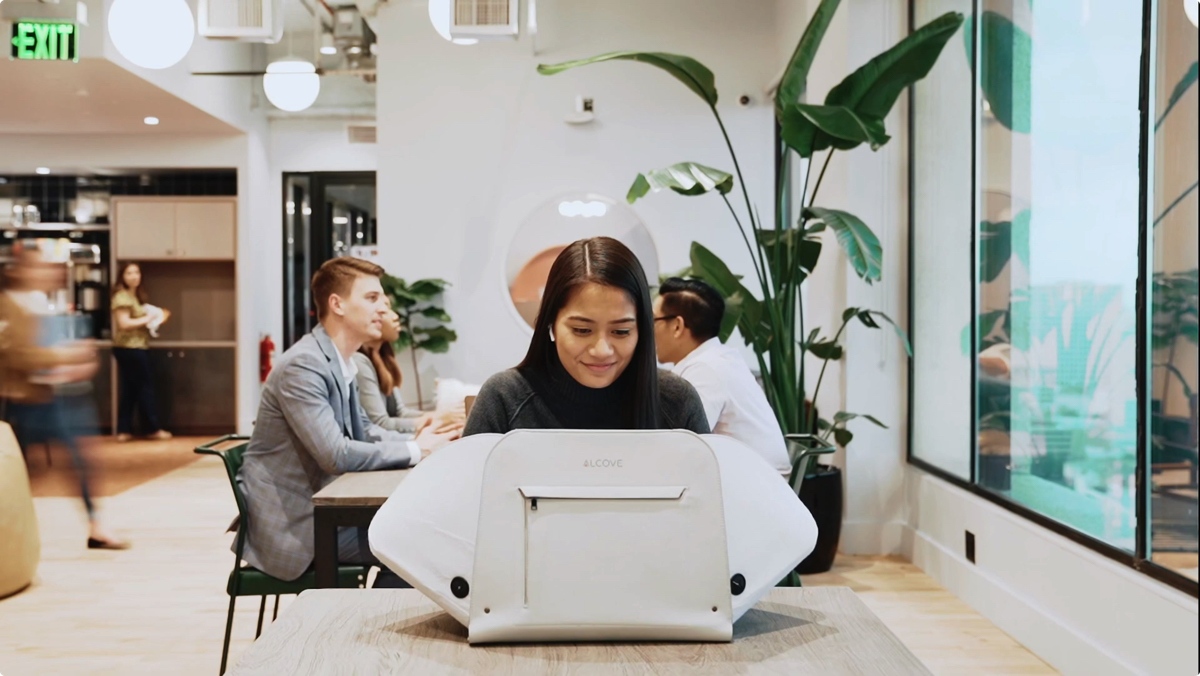 「ALCOVE」は開くだけで、サッと簡易のプライベート空間が作れるノートPCケースだ。