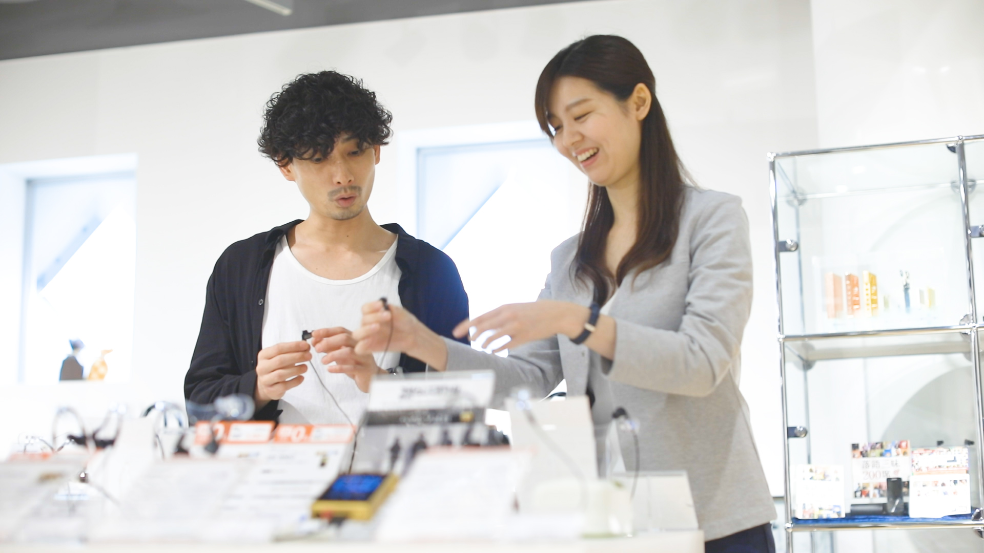 例えば、どんなヘッドホンがいいのか迷っているかたには、普段よく聴く音楽のジャンルはもちろん、住環境や通勤手段までじっくりヒアリング。製品の説明だけにとどまらない、一人一人にオリジナルなアドバイスが、「また来たい」気持ちをつくり出すのです。