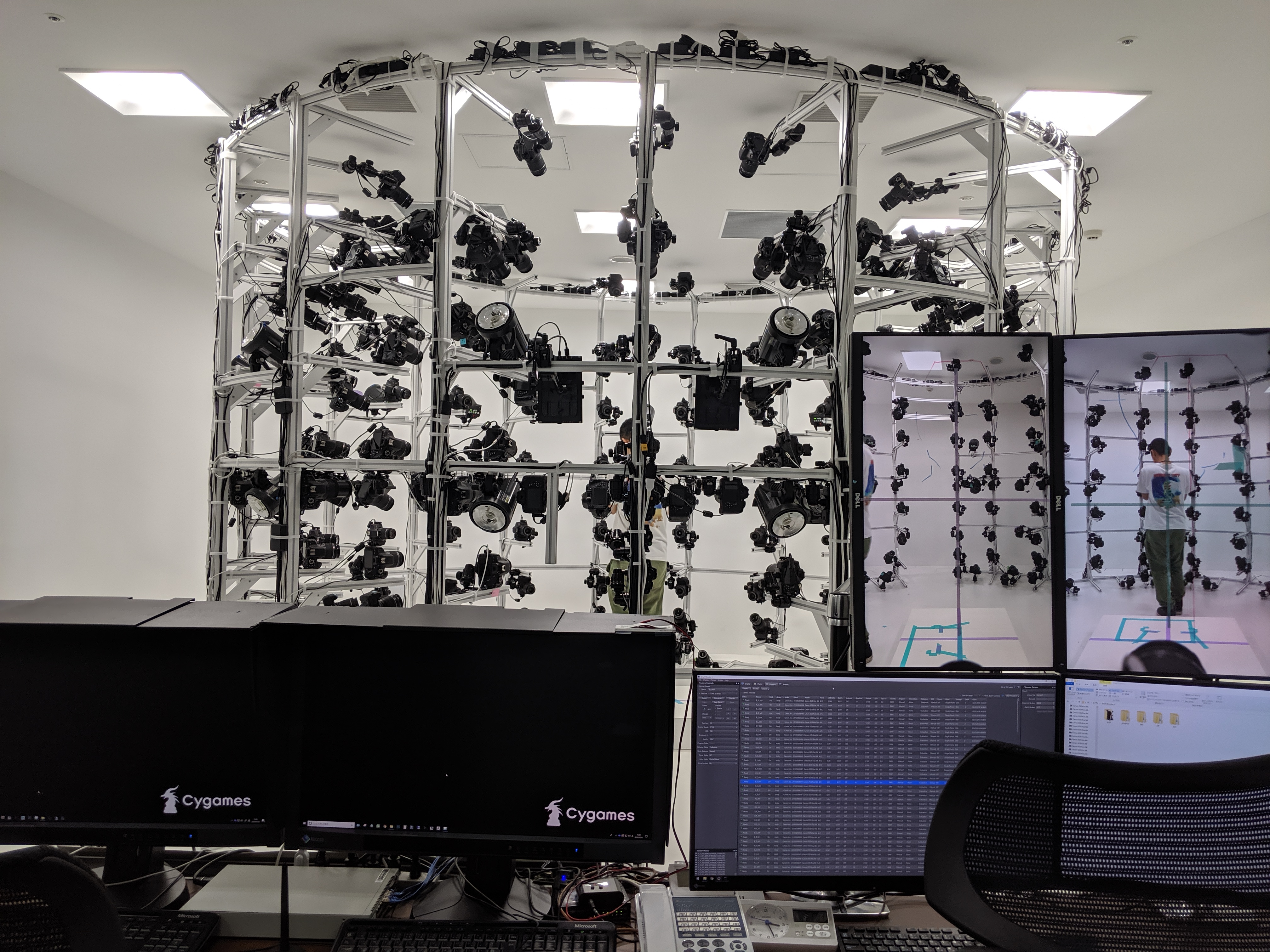 Cygamesのスタジオにはなんと、ビル内にもかかわらず、16m×9mの広大なエリアを72台のカメラで撮影できるモーションキャプチャースタジオが!