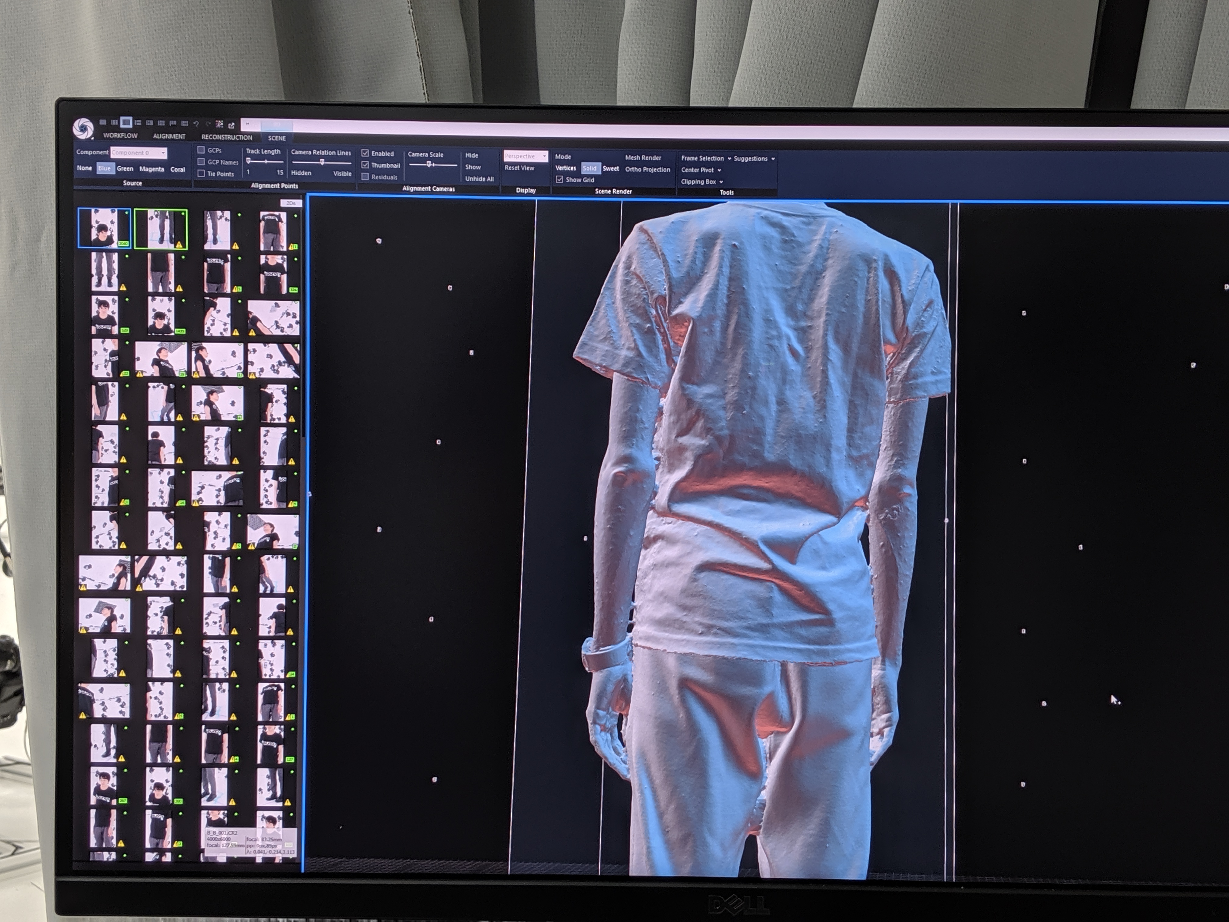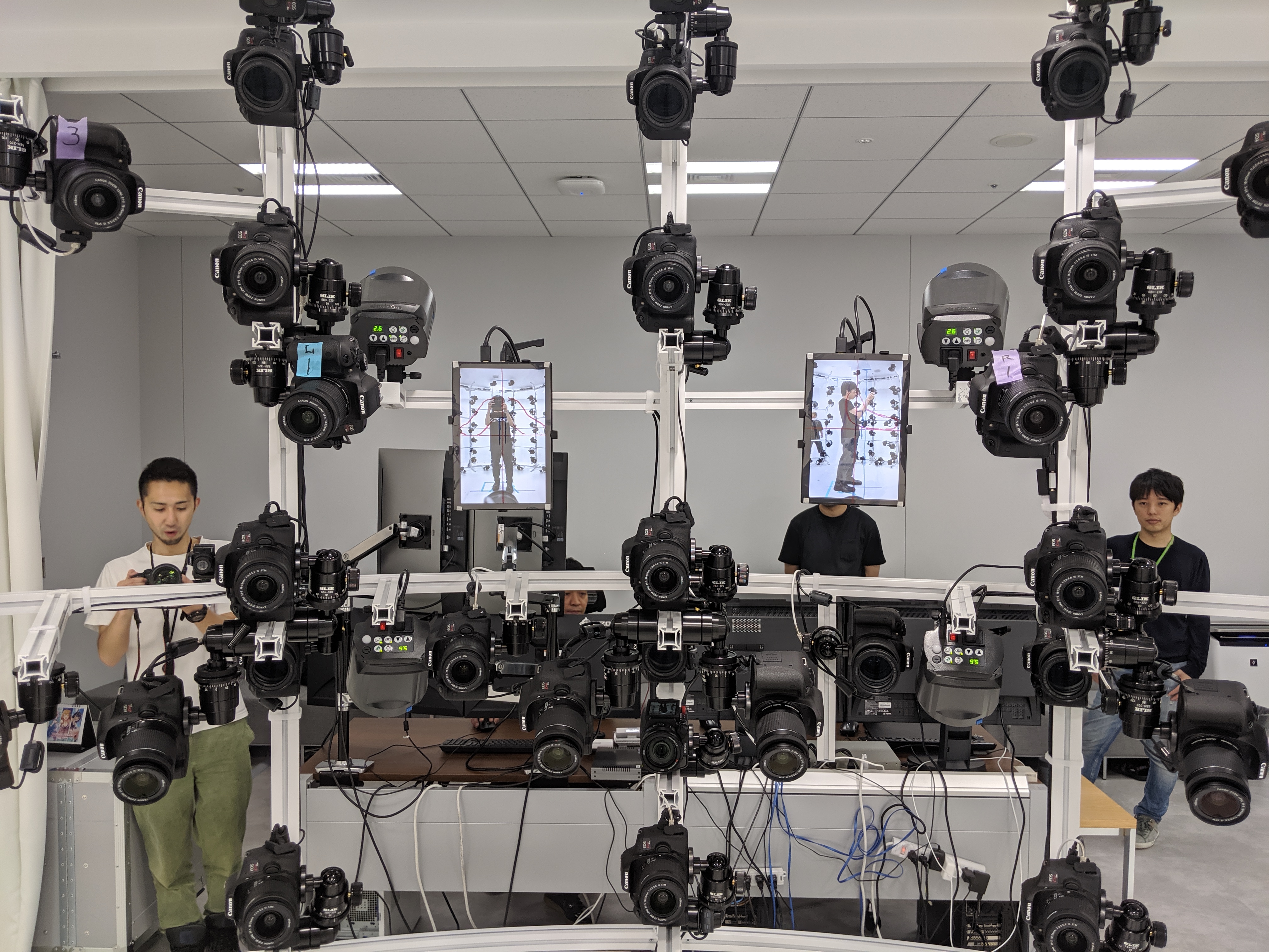 22台のストロボに加えて、カメラ164台が体を、58台が顔(内2台はサムネ用)を様々な角度から撮影し、その画像を解析することで、高精細な3Dモデルになる。