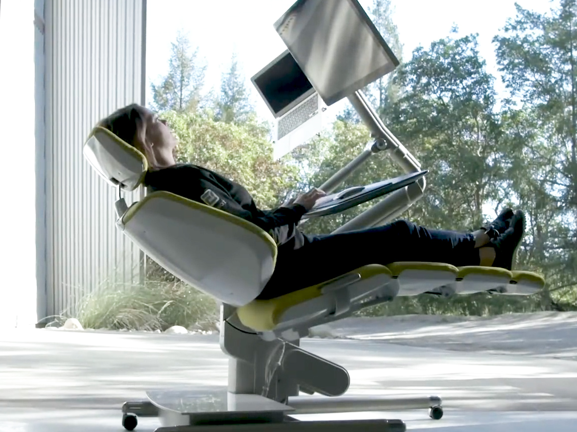 アメリカのAltwork社が開発した「ALTWORK STATION」は、リクライニングチェアのような見た目で、座る・立つ・寝ると自由な姿勢で仕事ができるデスク。