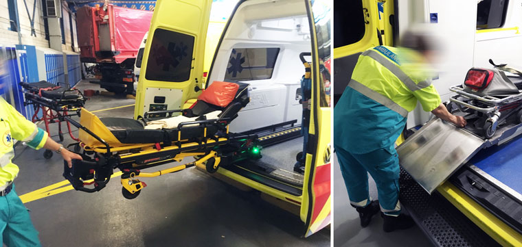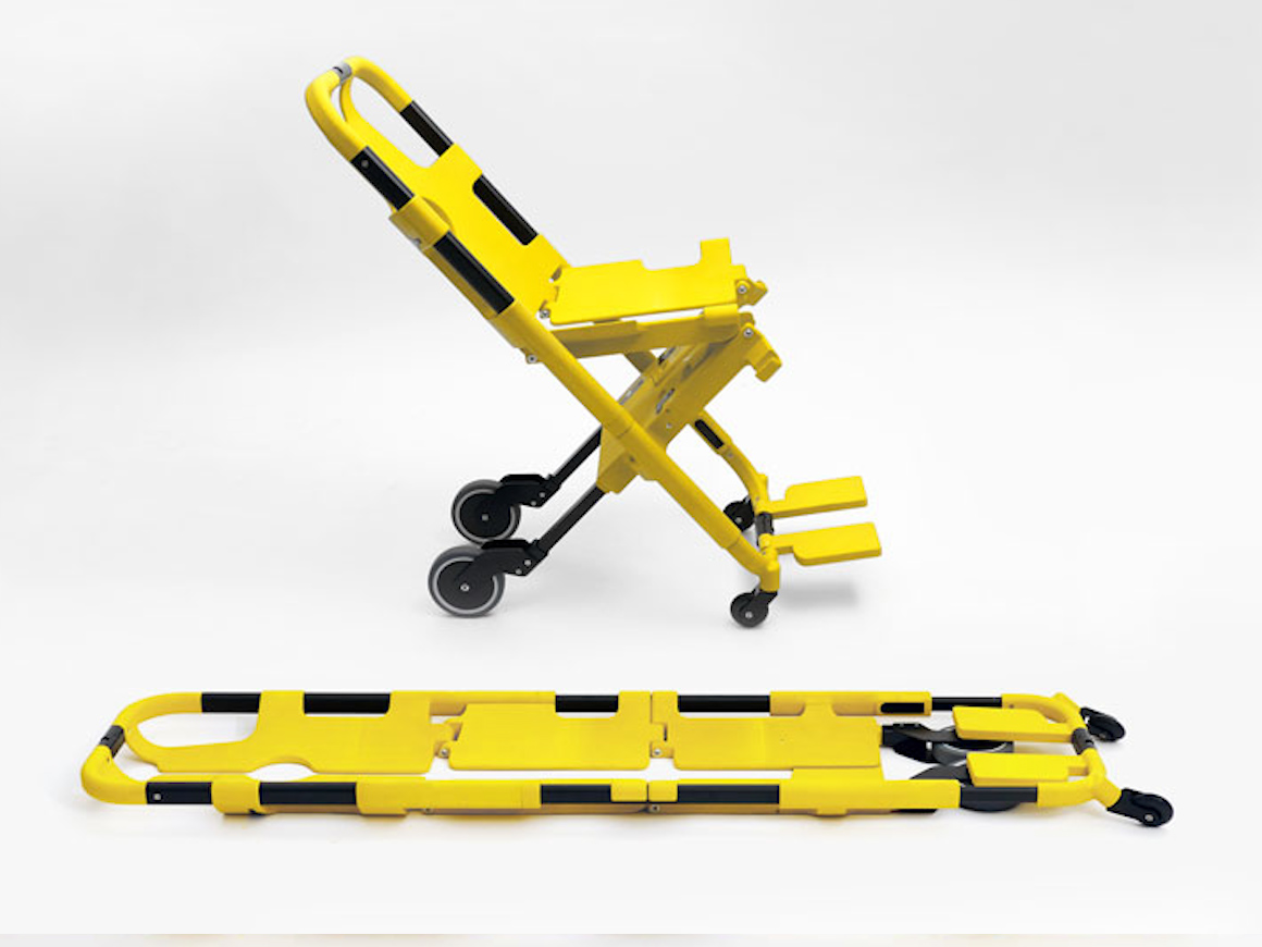 特許取得済みのメカニズムで、担架から車椅子へ、車椅子から担架へ、わずか数十秒で変形させることが可能。