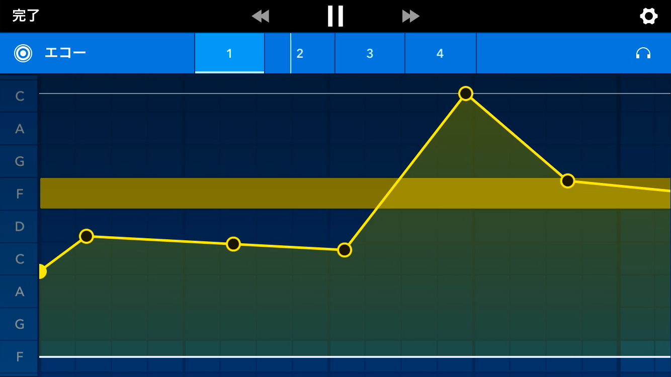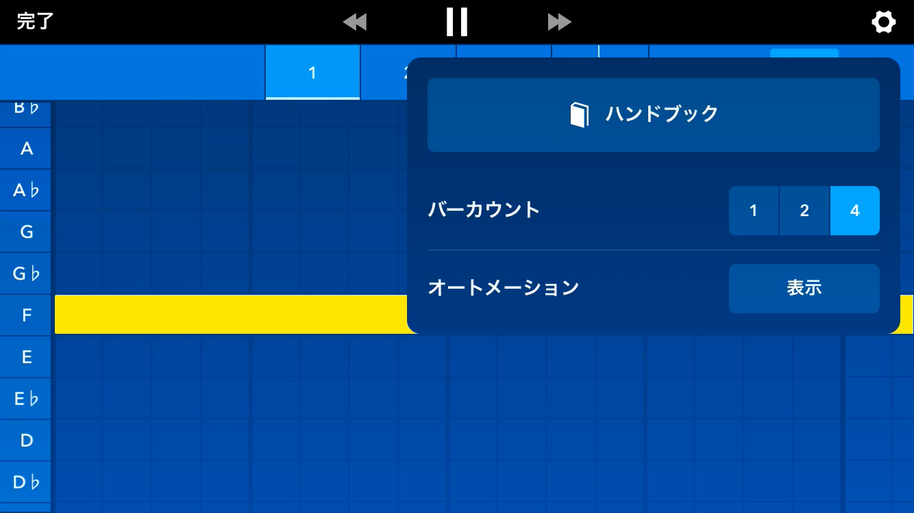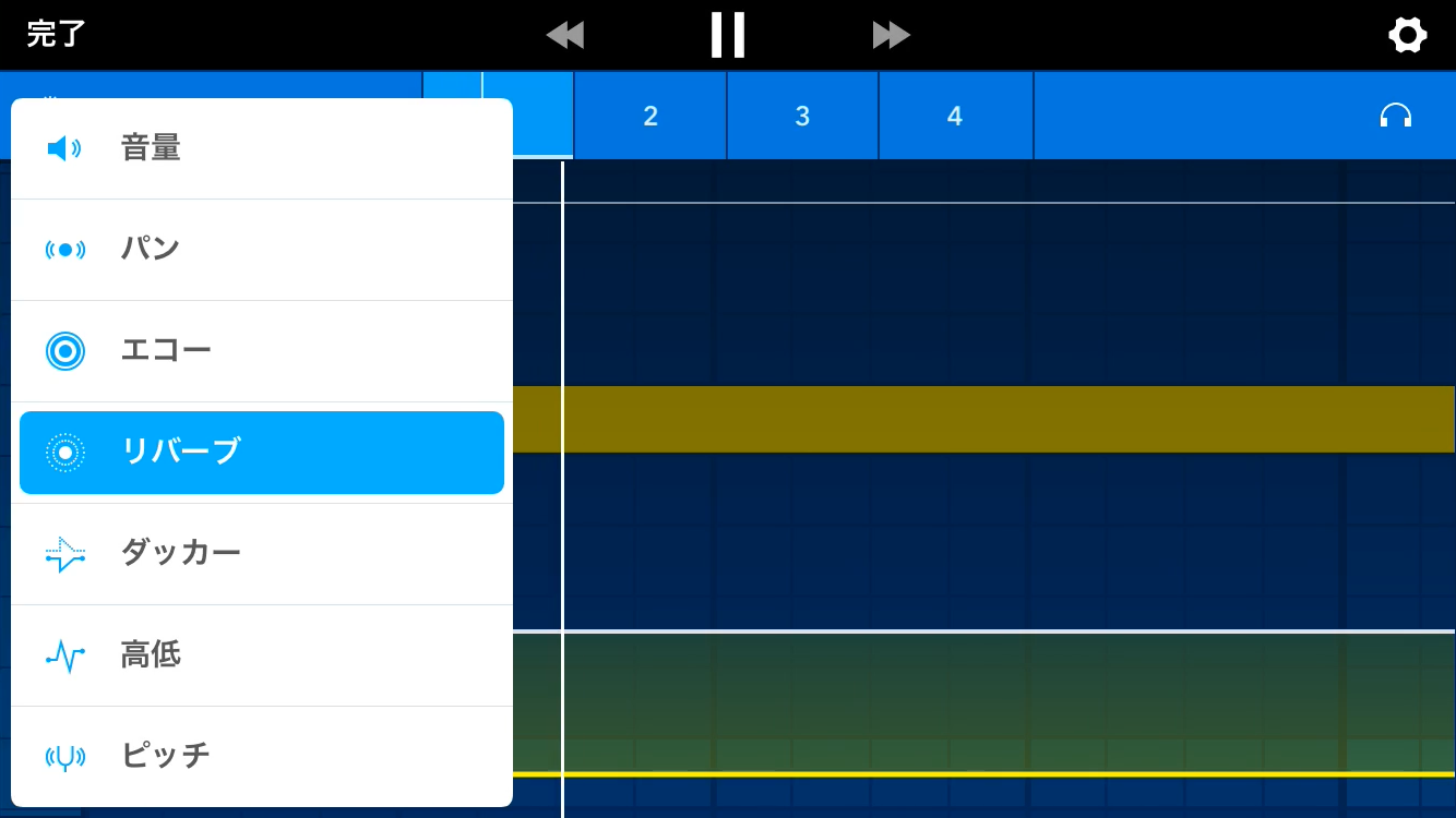 オートメーションの黄色いバーをタップすると編集ポイントが出てきますので、それでカーブを描くことで、時系列に合わせてパラメータの制御ができます。