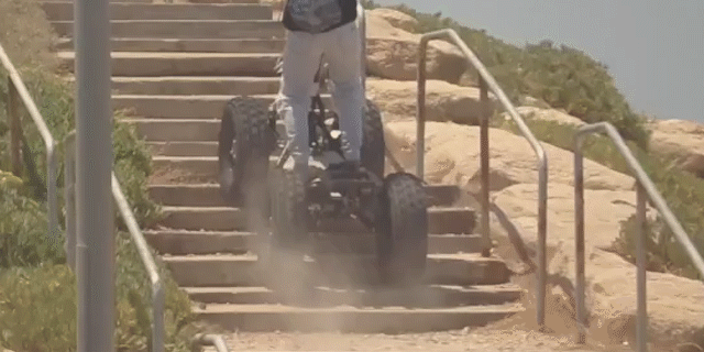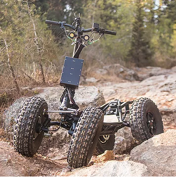 民間用EZRaiderシリーズ最強の「EZRaider HD 4」は、タイヤが自由自在に動く四輪駆動車。砂丘・泥沼・雪・階段すらもろともしない。