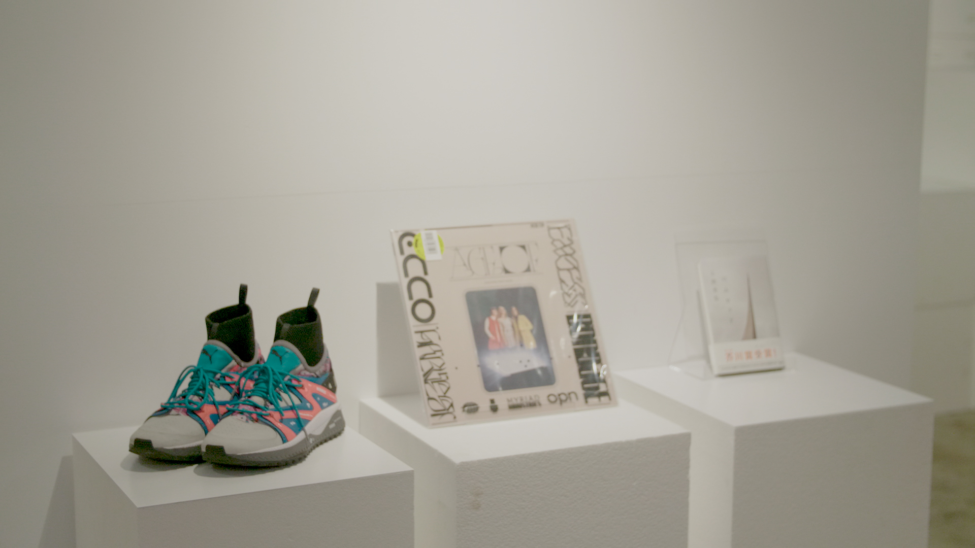 また洋服がかかったトルソーの周りに目をやると、洋服のブランドの世界感が広がっている。着用したモデルやブランドのイメージビジュアルなどを見ることができる。