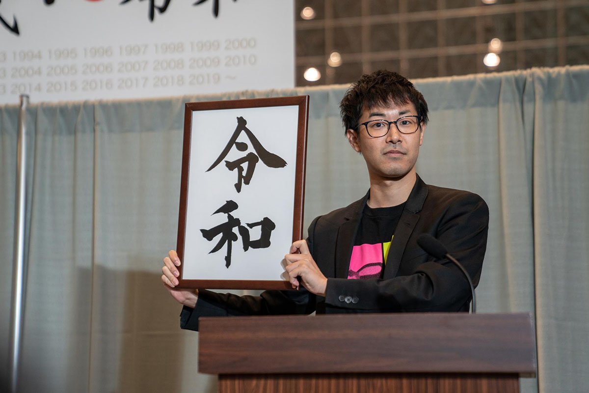 歌舞伎、VTuber、人間将棋、ゲーム、アニメ、ボカロなどなど日本の文化が大集結していた超会議ですが、個人的に外せなかったのが「超平成・超令和」ブースです。このブースでは、「令和」や「平成」を掲げて記録映像などでおなじみのシーンのような撮影可能。ということで、“令和おじさん風”に記念写真を撮りました。