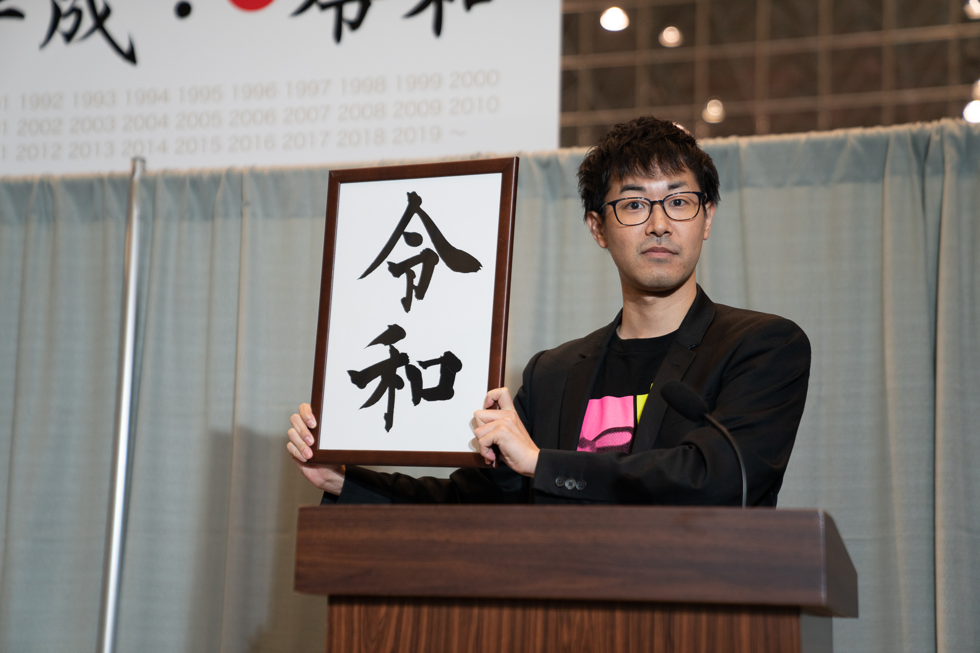 しかも、新元号令和を控えているということで、「超平成・超令和」ブースも展開。「だいたい本物な"平成の書"」「だいたい本物な"令和の書"」を展示中。その真横では、菅官房長になりきれるブースも展開している。