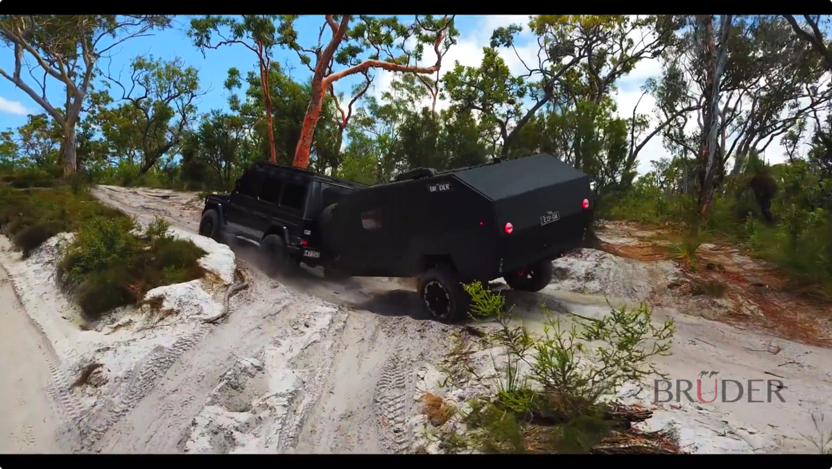 オフロードでも快適な走りをみせる、新しいキャンピングトレーラー「EXP-4」。トレーラーだと気になる、段差などの車への揺れや衝撃も、独自のサスペンション技術で軽減。悪路でも安全で、楽しいキャンプが楽しめそうだ。