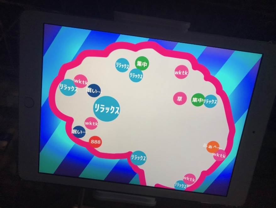 目をつぶると「リラックス」などが多く出てくるそうですが、私の場合「wktk」がたくさん出てきました(wktkとは、「ワクワクテカテカ」の略で、期待に心踊らせている様子を表します)。ニコニコ超会議なのでしょうがない…!