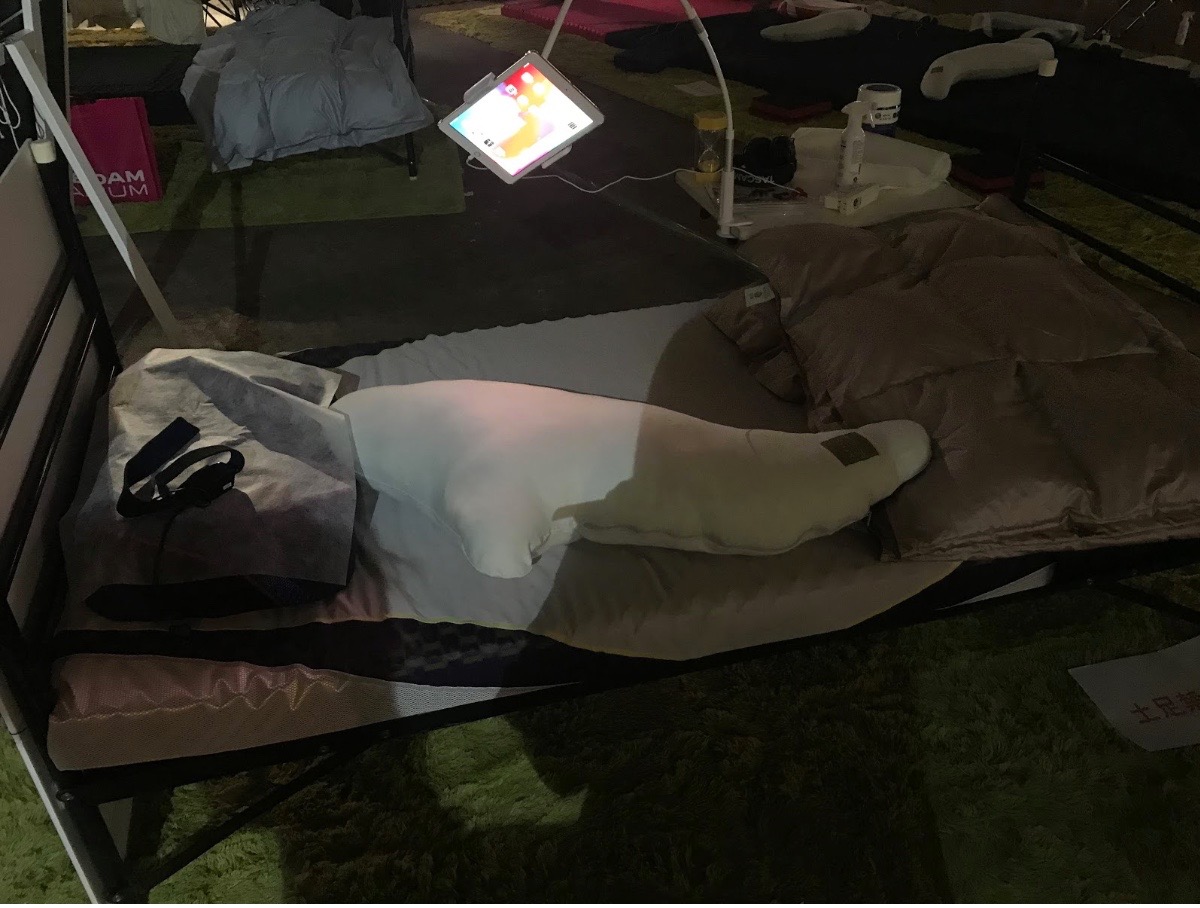 ニコニコ超会議2019(2019年4月27日28日、幕張メッセ国際展示場)の「超睡眠」ブースを体験してきました。このブースでは、専用のセンサーを頭(おでこと耳)に取り付けて、15分間「寝る」ことができます。